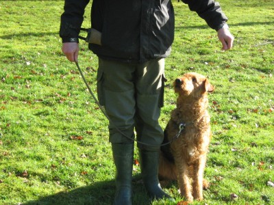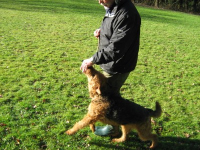 Die Kommandos "Platz" und "Sitz" werden bereits ohne Hilfe angenommen. Mit "Brav" bestätigt, danach kommt die Freigabe des Futters mit "Jawohl".